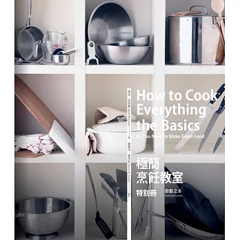 (《極簡烹飪教室》系列一套六冊,除本書外,還包括:早餐、點心與沙拉;海鮮、湯與燉煮類;米麵穀類、蔬菜與豆類;肉類;麵包與甜點。)